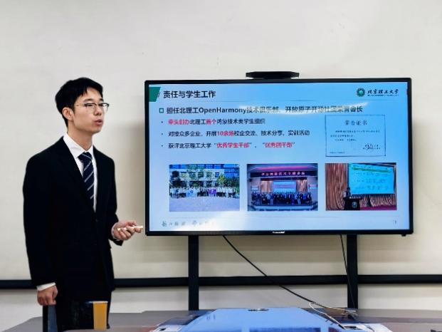 评审会现场,来自各培养单位的候选人按照抽签顺序依次上台进行答辩,他们从学业成绩、科研创新、社会实践、综合素质及未来规划等多个维度,全面展示了积极进取、追求卓越的北理工学子风采,弘扬了“矢志强国、坚韧无我”的北理工精神。候选人不仅在专业学习和学术研究等方面取得丰硕成果,更在国家级科技竞赛、科研创新、发明专利等方面有所突破,充分体现了学校在拔尖创新人才培养方面的显著成效。